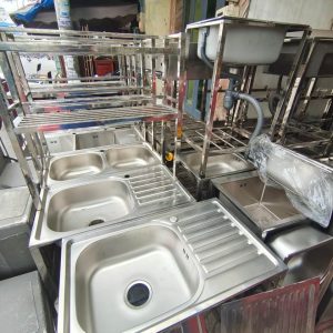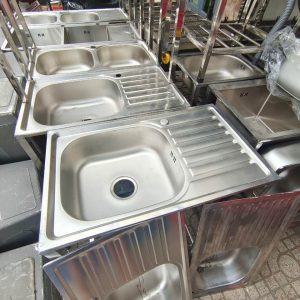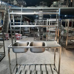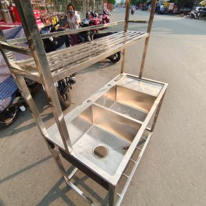 Bồn rửa tay inox 304 đơn đôi ba – có kệ giá rẻ